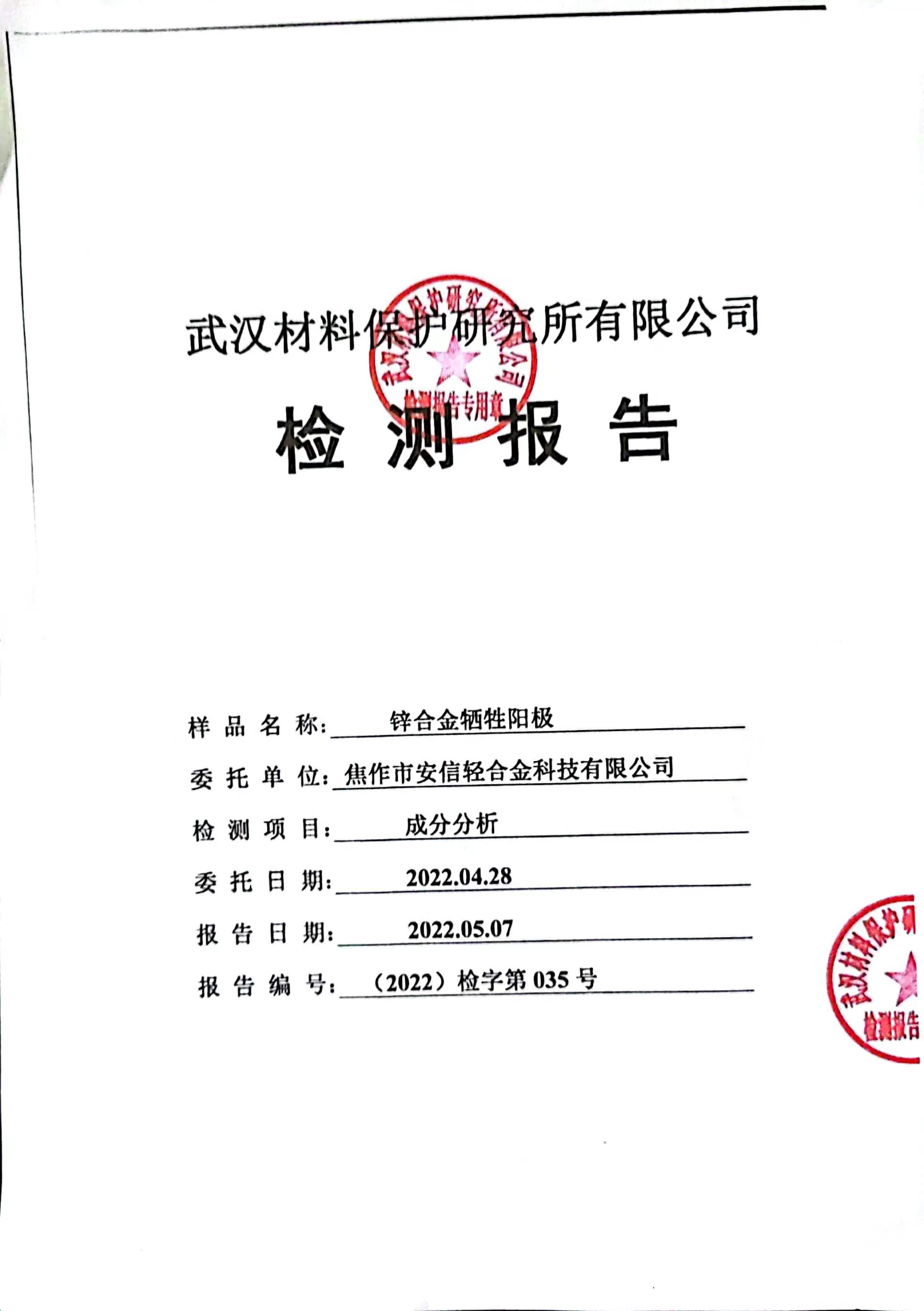 鎂合金犧牲陽極檢測報告(2)